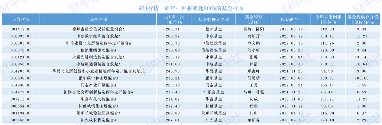 值得关注的是,部分产品的业绩已远超“翻倍”水平。数据显示,过去一年主动权益类基金中,收益率超过200%的样本有14只。其中,德邦鑫星价值灵活配置混合A(001412)凭借重仓半导体与计算机板块,以280.31%的回报位列第一;中欧数字经济混合发起A(018993)聚焦高端制造与数字经济主题,以266.27%的回报位列第二;中信建投北交所精选两年定开混合A(016303)因捕捉到北交所行情而异军突起。信澳业绩驱动混合A(016370)、永赢先进制造智选混合发起A(018124)等基金同样进入高收益梯队。